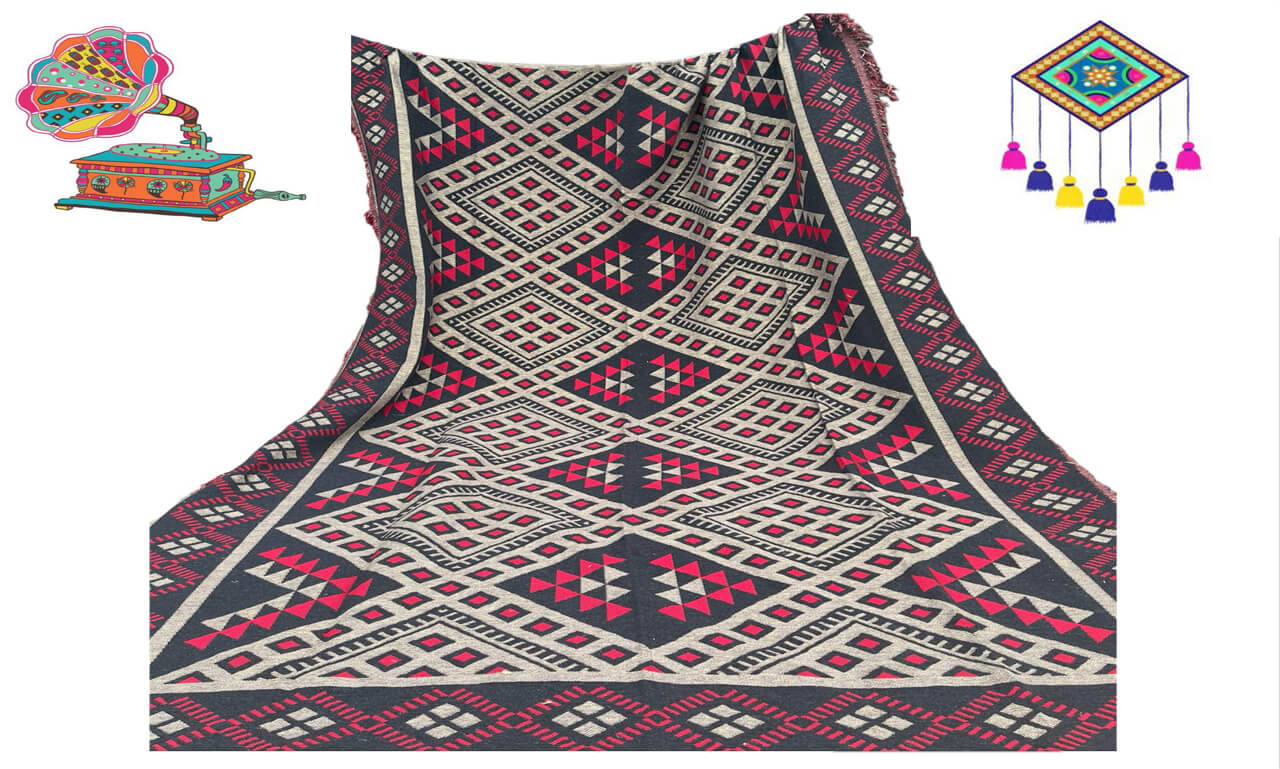 Futa Tunisie fabrique les tapis jacquard coton tissés integralement en machine produit sur un metier à tisser et les franges sont noués à la mains par nos artisans. La technique de fabrication est moderne mais nous avons gardons le savoir faire ancestrale et handmade. Nos tapis jacquard sont disponibles en plusieurs motifs (moderne, berbere, traditionnel) , composition ( laine pour hiver et coton pour été), coloris ( couleurs d’hiver foncé bordeaux, marron, noir , couleurs d’été vert, bleu, beige , gris ) , dimensions ( petit tapis , moyen tapis et grand tapis ). Pour les tapis jacquard les modeles les plus vendus sont :